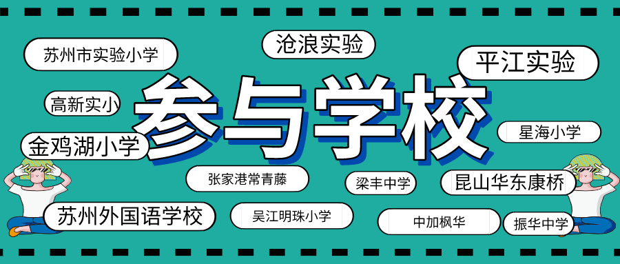 目前苏州市实验小学、沧浪实验、高新实小、金鸡湖小学、星海小学、平江实验、振华中学、苏州外国语、张家港常青藤、梁丰中学、昆山华东康桥、吴江明珠小学、中加枫华等学校加入、规模盛大!
