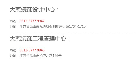 大慈装饰  昆山推荐率85%以上,口碑品牌  热线:0512-57779948/18551100758 地址:昆山市九方城保利地产大楼1704-1710