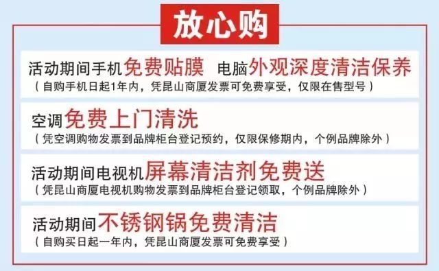 至昆山商厦家电生活三楼/周市店二楼客服中心