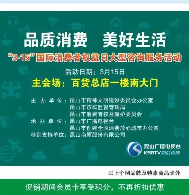 另外,3.15日当天在昆山商厦百货总店一楼南大门
