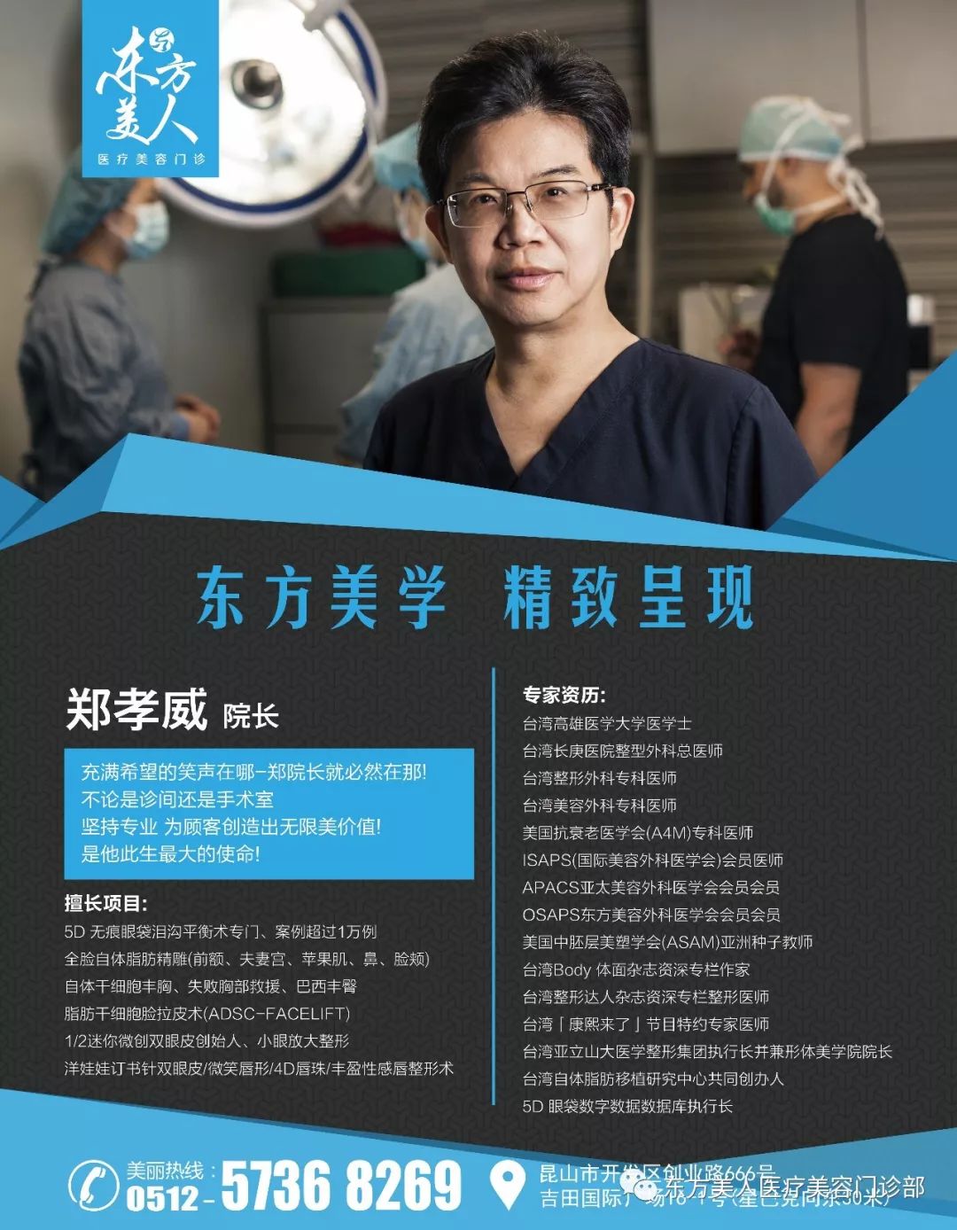 东方美人医疗团队将台湾的医疗整形文化引进昆山,秉持台湾医疗整形技术及专业的医疗品质服务,采用先进的医疗管理体系,将"顾客需求至上,专业团队医疗"的核心价值文化貫徹于临床实战中,实现顾客对美的追求。