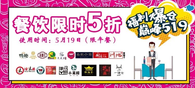 活动内容:即日起-5.19期间登录吾悦小程序,提前抢占餐饮限时半价名额,数量有限,先到先得!