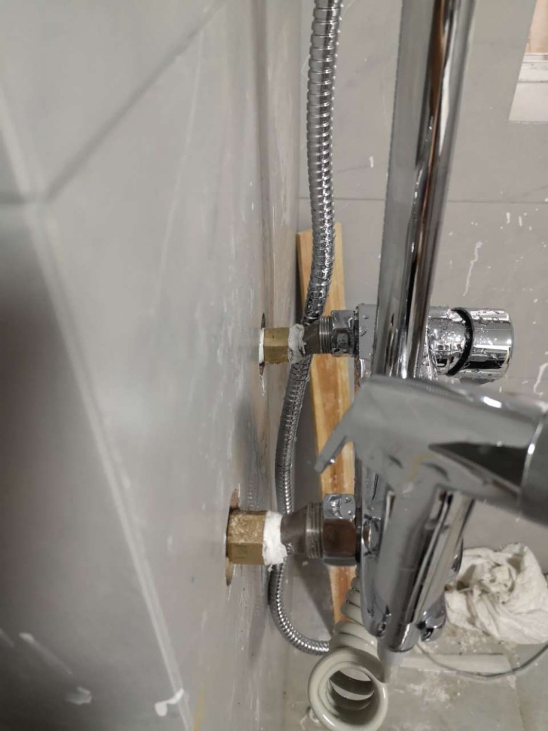 west100:20191116下午,寅盛监理过来,谈昨日之水头长短不一事。监理说,水管是皮尔萨做的,跟他公司无关,瓦工在固定和贴砖时,没考虑过水头之间的水平对齐问题。事已至此,由寅盛网购长度够用的几个盖子,到时盖住。[图片][图片] (2019-11-16 15:39)