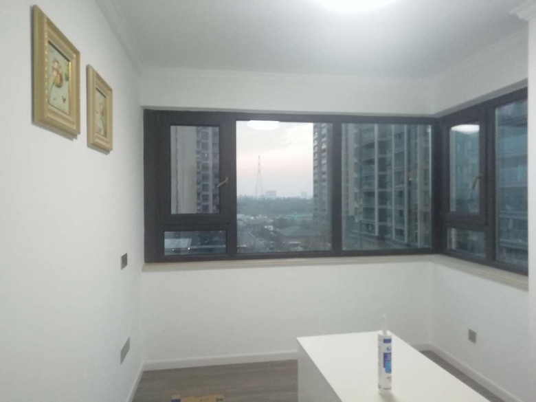 下午,寅盛监理杨工过来继续收边,给踢脚线,门套打玻璃胶。