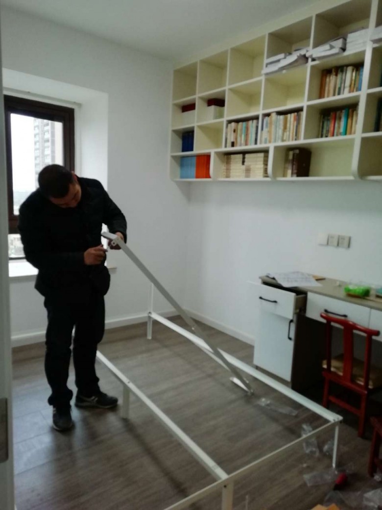下午,寅盛监理杨工上门补腻子,装剩余踢脚线,再补充一些收边工作。顺便请他把铁床安装好,费时费力,辛苦啦。