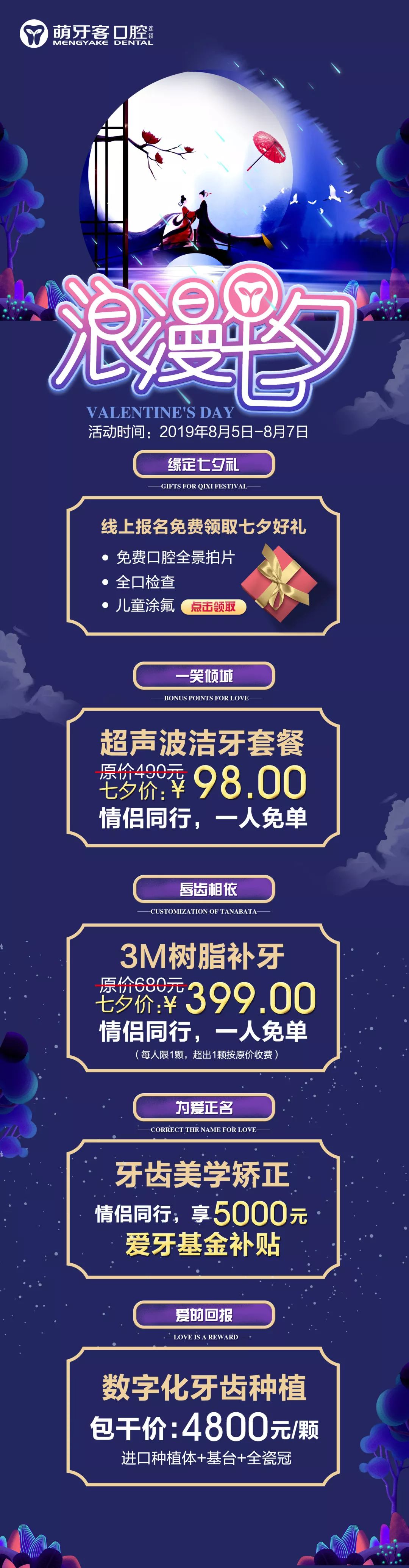 那么,你是否想要对心中的TA大胆表白呢?亦或是给亲爱的TA怎样的惊喜呢?想表白,可是参差不齐颜色各异的牙齿却让你羞于启齿?想给TA惊喜,可是送这送那太老套了?浪漫七夕美牙钜惠,送TA一份终身受益的大礼!
