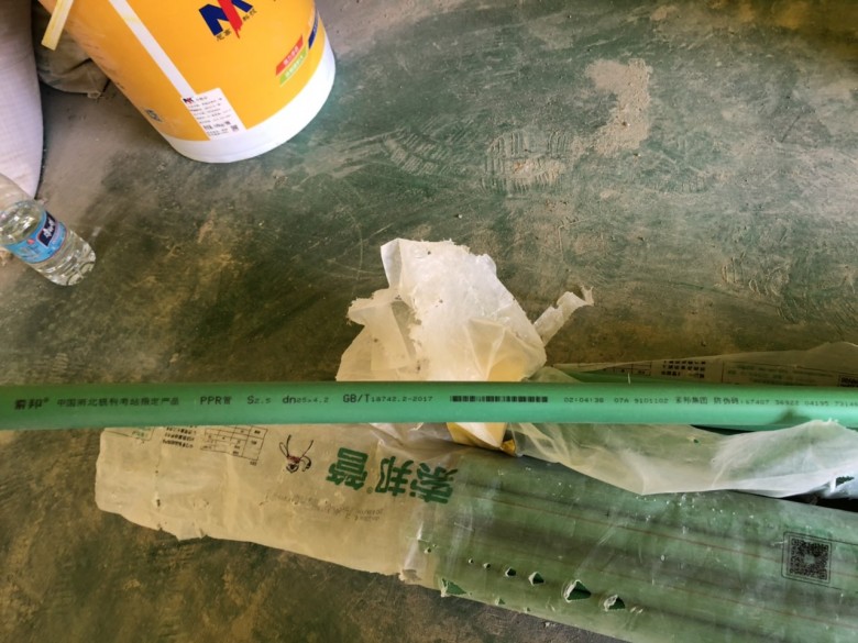 今天是中秋节~小区不让做。昨天材料送进场的。正好今天放假有时间去验收下。品牌都是按照之前商量的,长江电线,1.5平4卷,2.5平8卷,4平2卷,还有一根空调的长江电缆线。水管是索邦的,冷热水管都采取热水管材质。水管,电线都查询了防伪码~正品。