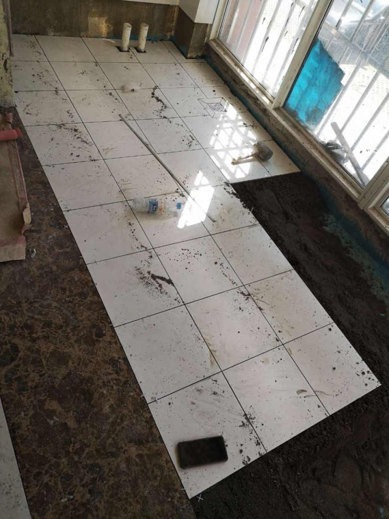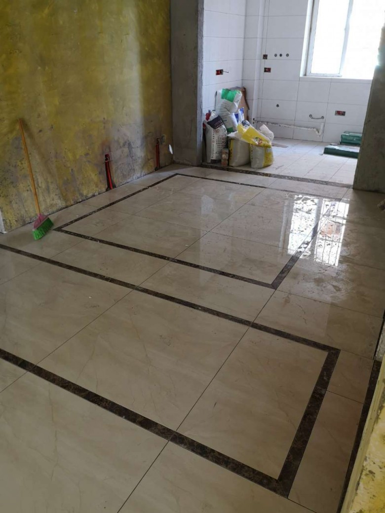 9.14客厅地砖完成三分之二,整体效果看起来还不错