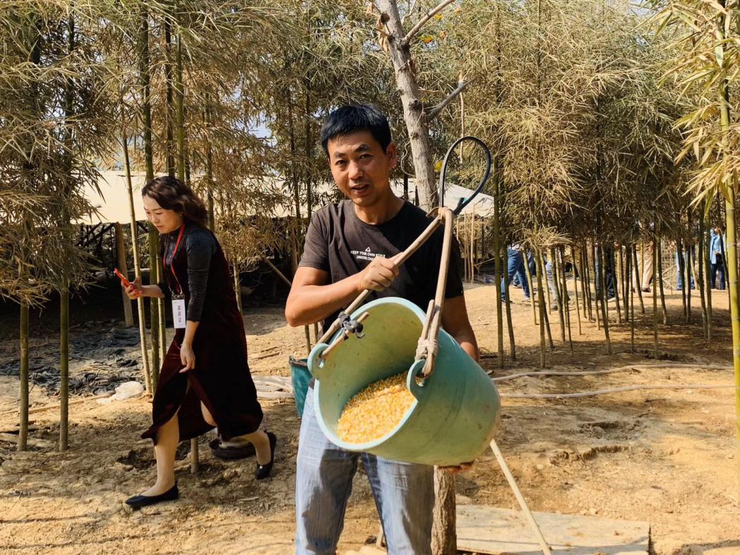 紧接着驱车前往老阿爸的竹林鸡养殖基地,实地参与了饲养和捕鸡。饲养区位于半山的竹林里,需徒步10分钟左右上山。周边群山围绕,山泉水从高处流下,鸡群在竹林里悠然自得,喝着甘甜清冽的山泉水,看起来好不惬意!