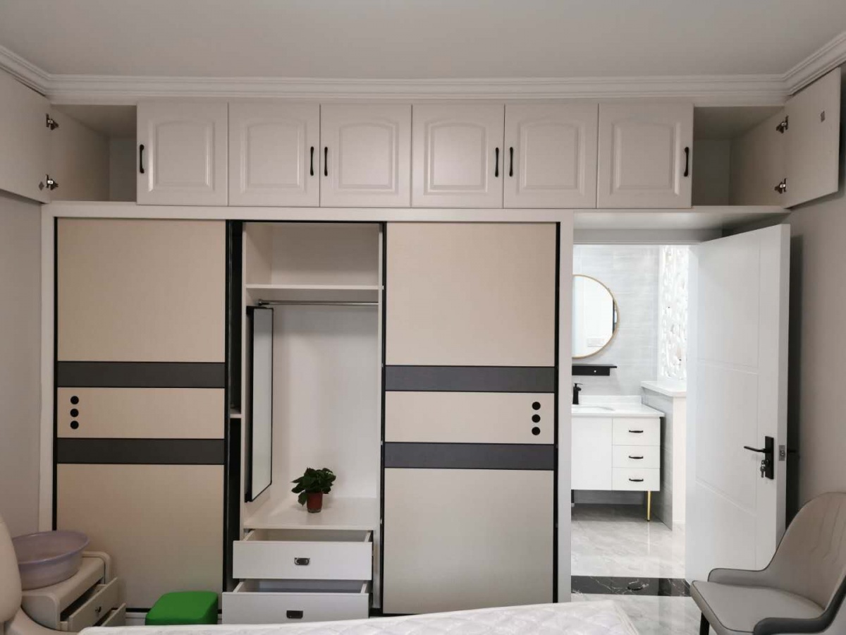 卧室设计简单纯净,为主人营造了一个宁静平和的就寝环境。衣柜在设计中还加了穿衣镜,为以后的生活提供了便利。