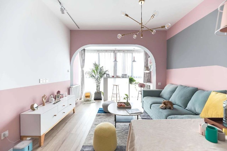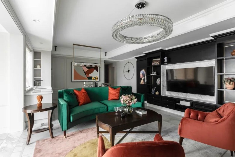 135㎡轻奢风案例,大胆配色,一处年轻活跃生活空间