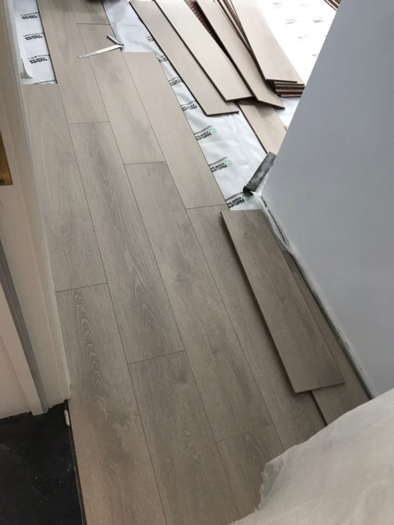 这个房间是我最后倔强。铺地板当天我在现场,看到这个地板有铺法马上上网查的,全面那些资料也是,奈何师傅他是先把5分之3的地板切好,再开始铺,差不多铺完第一间房间我就明白我铺法这些玩意了,(偷偷说一句,师傅干活真的很快)这间房间是按照我的想法铺的