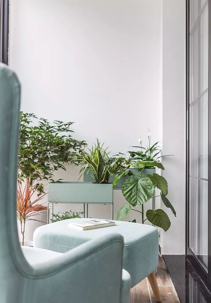 把以前客厅通往阳台的小门敲掉,做了四扇透明的黑色推拉门,使采光变得更好了。