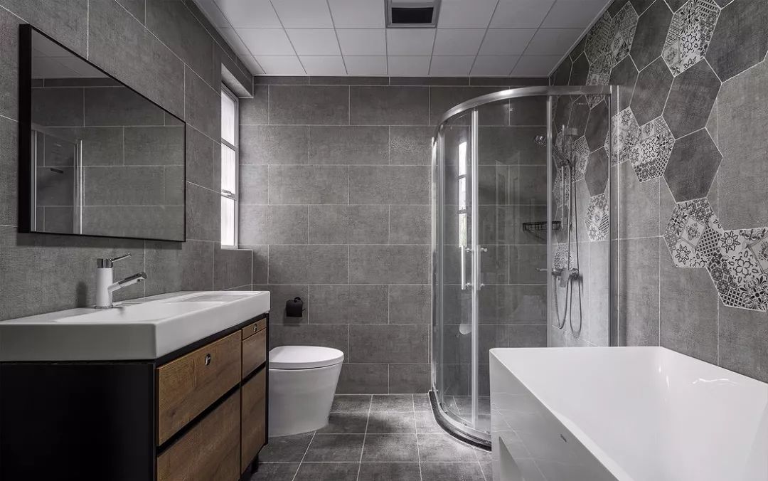 主卫,业主希望有浴缸和淋浴房,设计师合理规划空间,使两个功能都能具备。