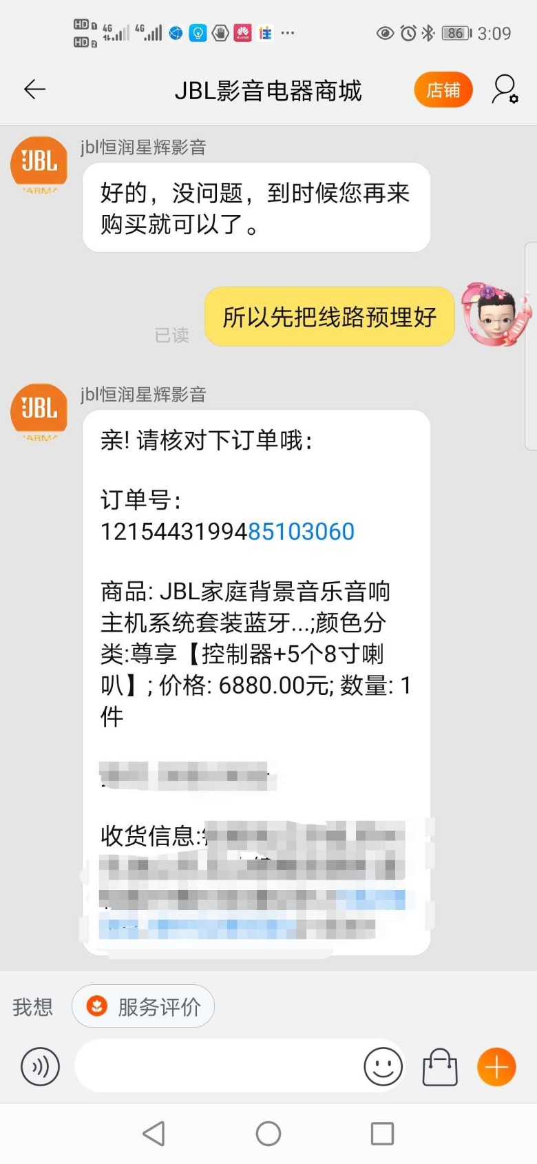 某宝的第一个设备就是JBL吸顶背景音乐音响,也配备语音控制,可以连接小米和天猫精灵,买了个5喇叭可以分三区控制,其实家里面两区控制就足够了。客餐厅3个,厨房和主卫各一个。第二刀6880元。