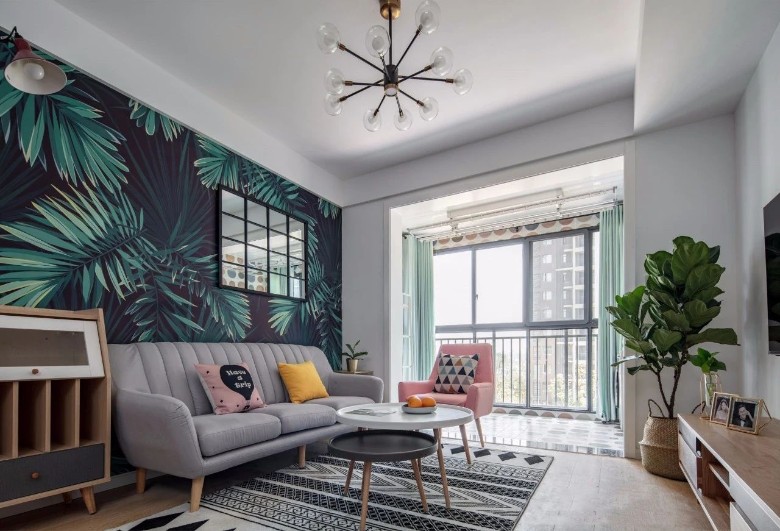 客厅作为居家休闲的空间,以森系风的元素来布置,可以使得空间充满清新自然的气息,令人清闲舒适,充满精致端庄的气质。