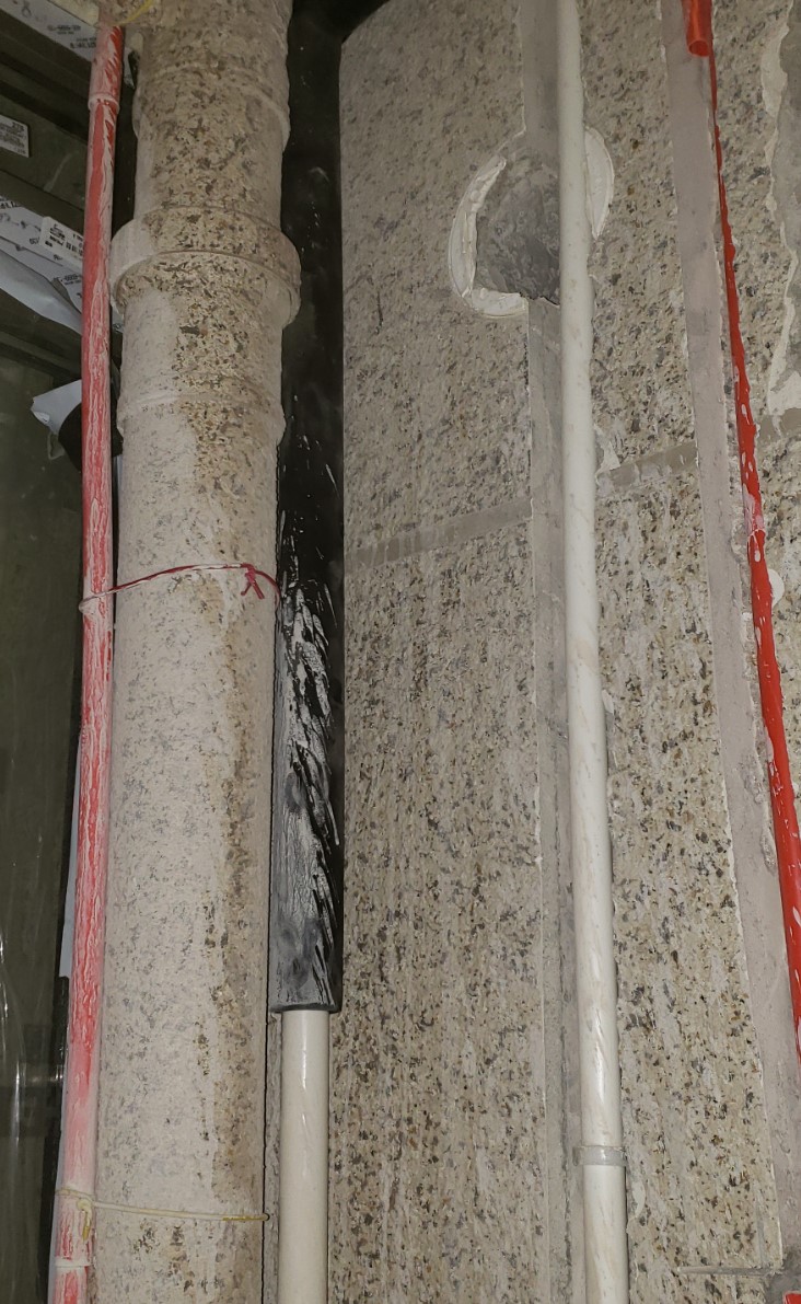 由于最初没考虑卫生间用大理石拉槽,如果贴瓷砖地漏放在了边角下水好点,后来感觉还是用拉槽好,地漏位置已经没法改了,拉槽卫生间,地漏应该摆在居中位置用长条淋浴美观,只能带点遗憾了,这个就是最初一定要考虑好。