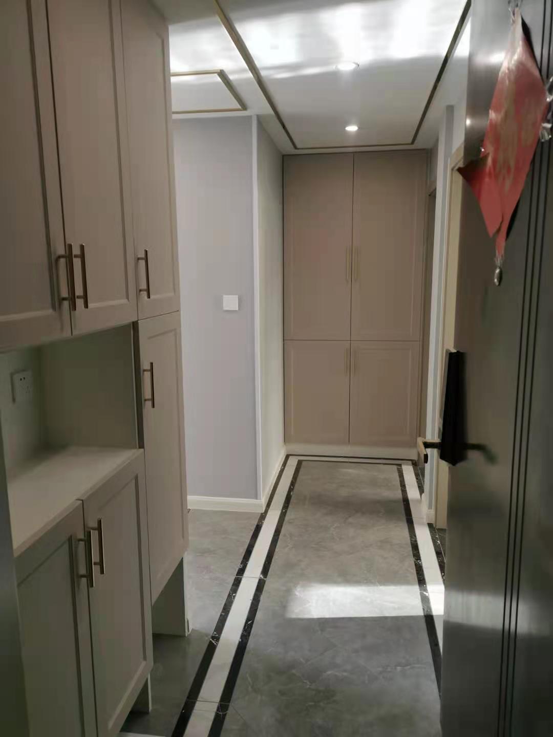 ▲玄关设计到顶鞋柜,满足了日常的收纳需求。中间留空,方便平时摆放东西,而且还贴心的留了个插座,方便以后用一些小家电。底部也是留了空收纳鞋子,而且有高低区分,用来收纳不用高度的鞋子,女主人的靴子不用担心没地方放啦。