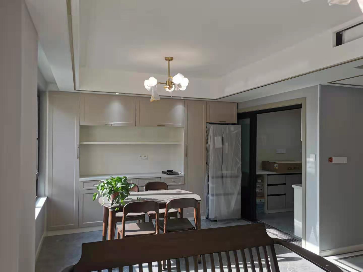 ▲客餐厅在一个空间内,中间没有做隔断,使得空间非常开阔。餐厅旁边的墙面也做了储物柜辅助收纳,冰箱内嵌,节省空间。