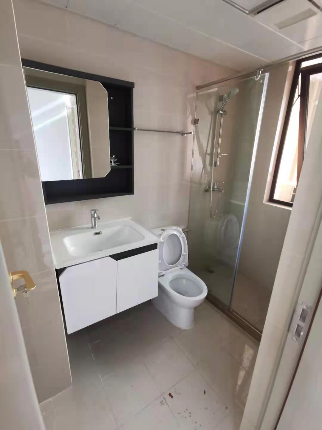 ▲一楼的洗手间,这样不用楼上楼下的跑了。卫生间以白色为主,敞亮又干净。玻璃淋浴房,干湿分离,水不会溅的到处都是。