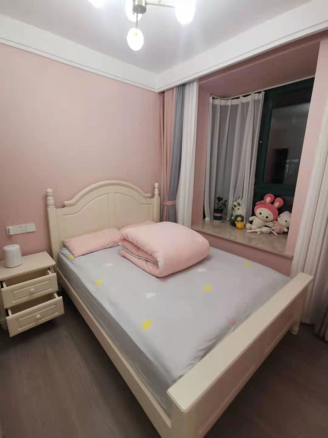女儿房在设计上用了小姑娘都爱的粉色来装饰。满满少女心,非常可爱。就连床品都选用的粉色,满足了孩子的公主梦。窗台上摆放的玩偶,也是非常可爱呢。