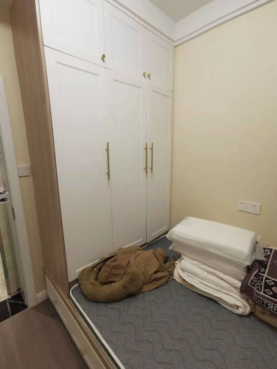 客卧用的是榻榻米+书桌的搭配,一房多用,既能当书房使用,满足平时的学办公需求。有客人来的时候还能充当客卧。而且榻榻米方便储物,也解决了小面积房屋收纳不足的问题。