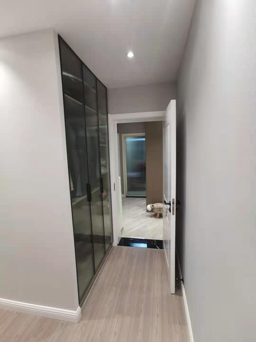 整个屋子的橱柜很多都选择的是透明玻璃移门,非常大气好看,主卧也不例外,轻奢十足!