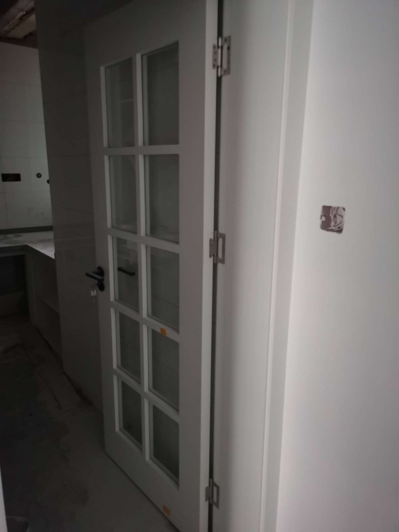 国庆节前卧室、餐厅的门到位了,昨天乳胶漆也上墙了。