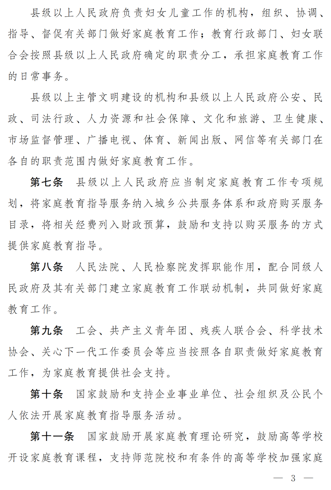《国家中长期教育改革和发展规划纲要(2010-2020年)》明确提出,要“发挥家庭教育在儿童少年成长过程中的重要作用”,制定有关家庭教育的法律。