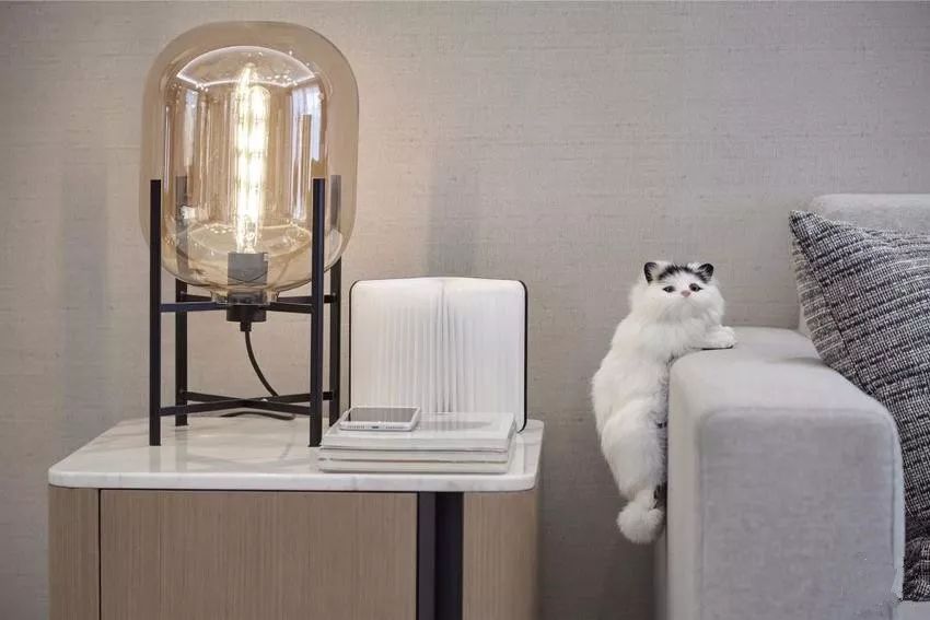 沙发旁边的台灯设计独具匠心。