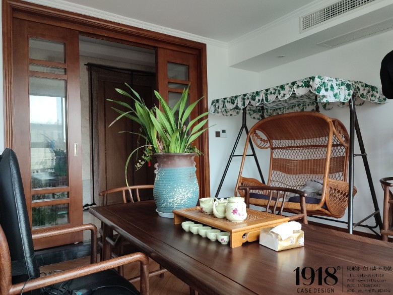 一人一茶一心境!业主向往采菊东篱下,悠然见南山的生活观,所以将这个空间也打造出了非常静谧的感觉。摇椅茶水绿植夕阳都呈现出精致的美感,目光所及之处皆是惊喜。
