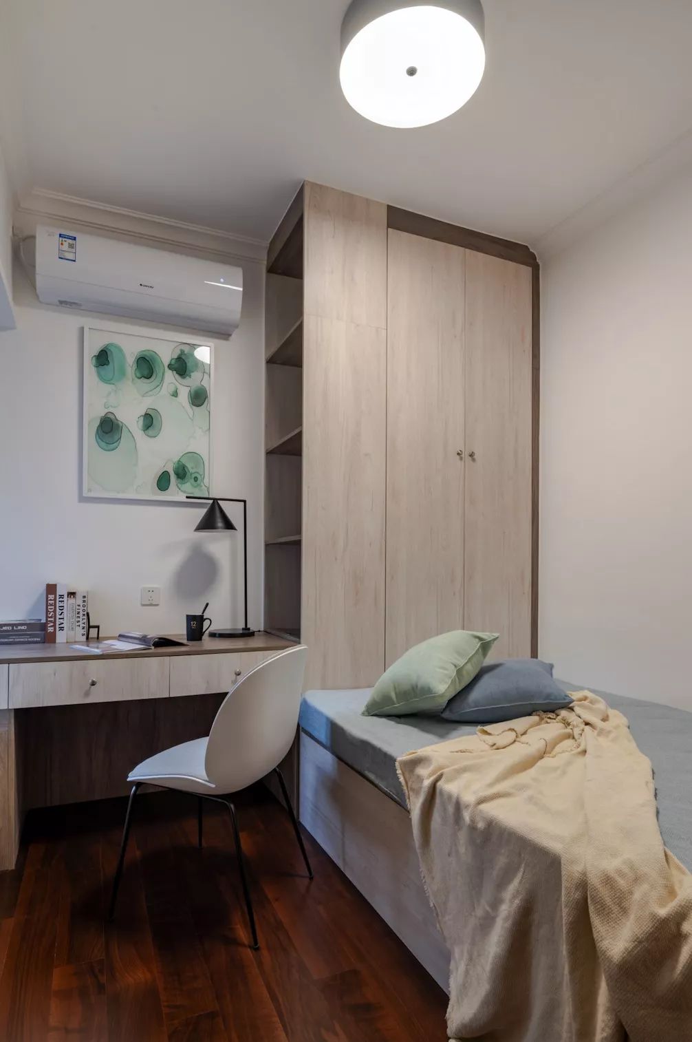 客房的空间并不大,毕竟也是作为备用卧室来使用的,一张榻榻米床组合衣柜和书桌,有客人来的时候,就不担心没地方睡了。