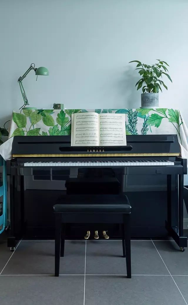 这个休闲区内还摆放了一架钢琴,孩子平时在家也可以练下钢琴。灰色调的地面搭配小清新的墙面,看起来也非常舒适。