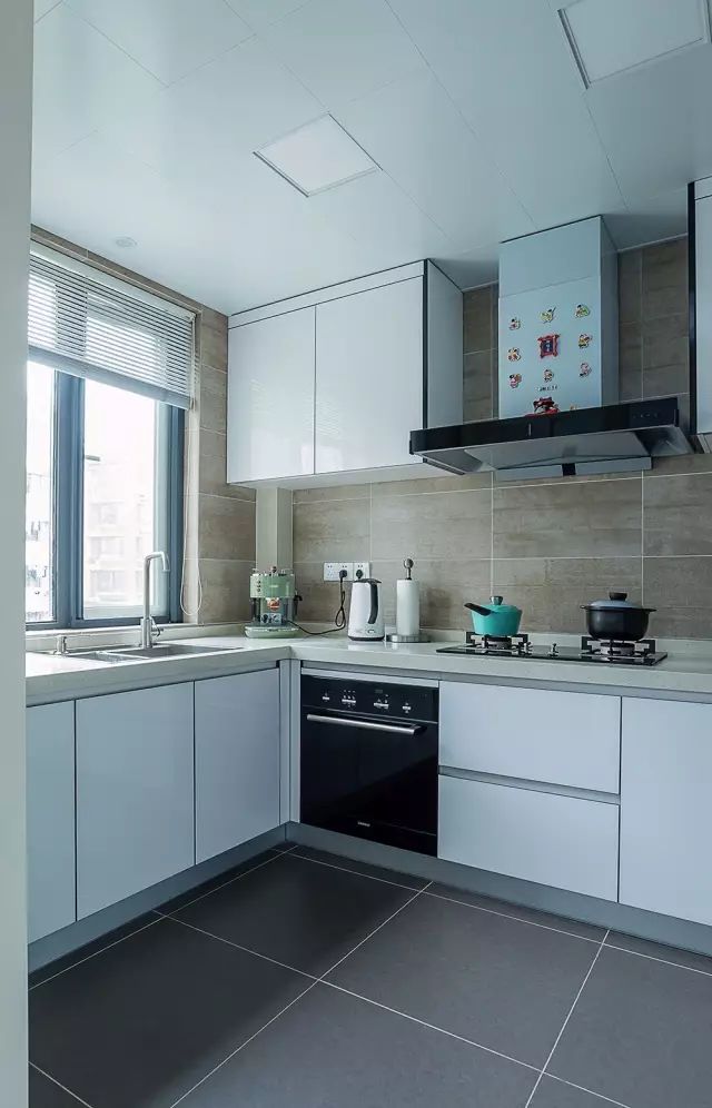 厨房内部是做了U字形的橱柜布局方案,让厨房拥有更多的储物空间,又不会太过拥挤。厨房内有个窗户也是很让人羡慕的事情,油烟问题不用担心,采光也很棒。