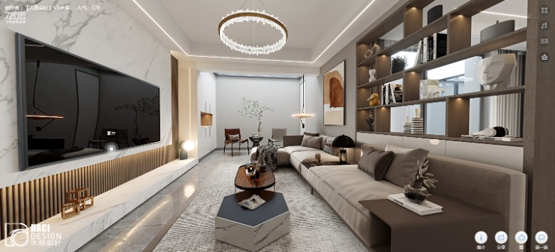 因为人口不多,一楼做了三居,极大保证了空间的开阔度;二楼客餐厨书房互通互联,采光满分的同时,更显通透与自由。