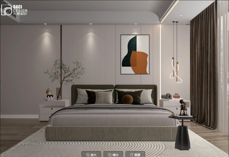 主卧带着一股淡淡的恬静与文气。特意选择无主灯设计,留下了一个单纯静谧的睡眠空间。