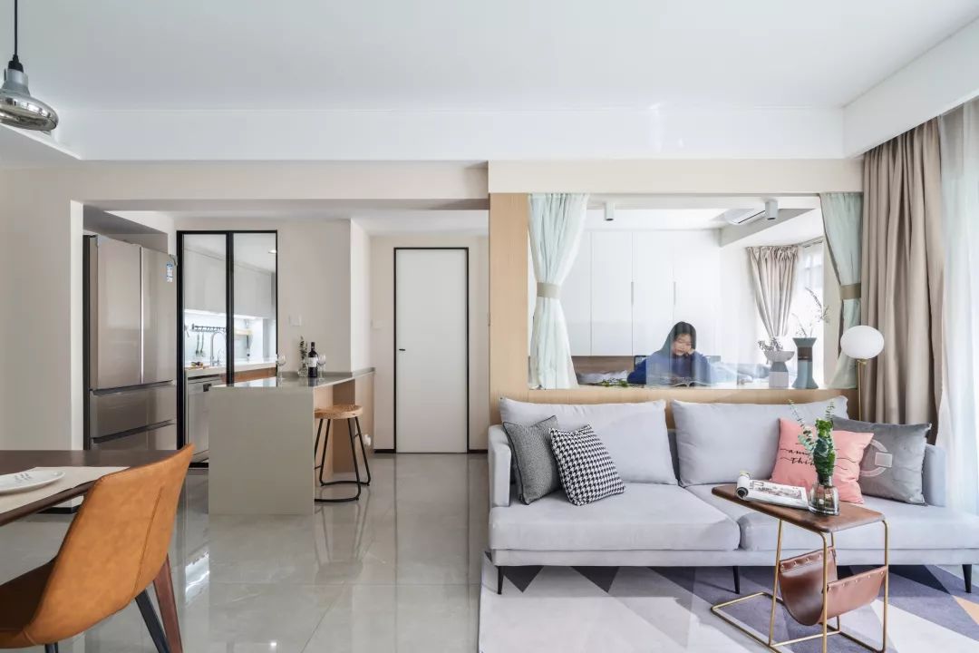 ▲ 功能房与客厅之间用玻璃作为隔断,既能提高两个房间的采光度,也更实用。