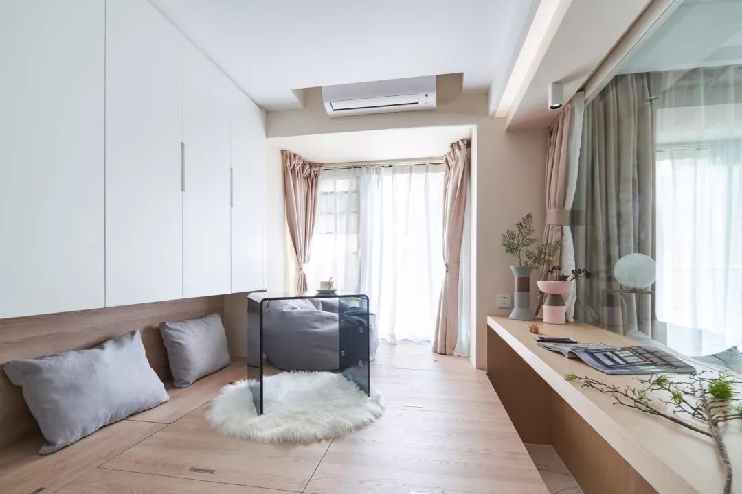 ▲储物功能超强的榻榻米设计,懒人沙发与小桌的支撑,更加具有小资情调。桌前的下陷区域,伏案看书、工作更加方便。