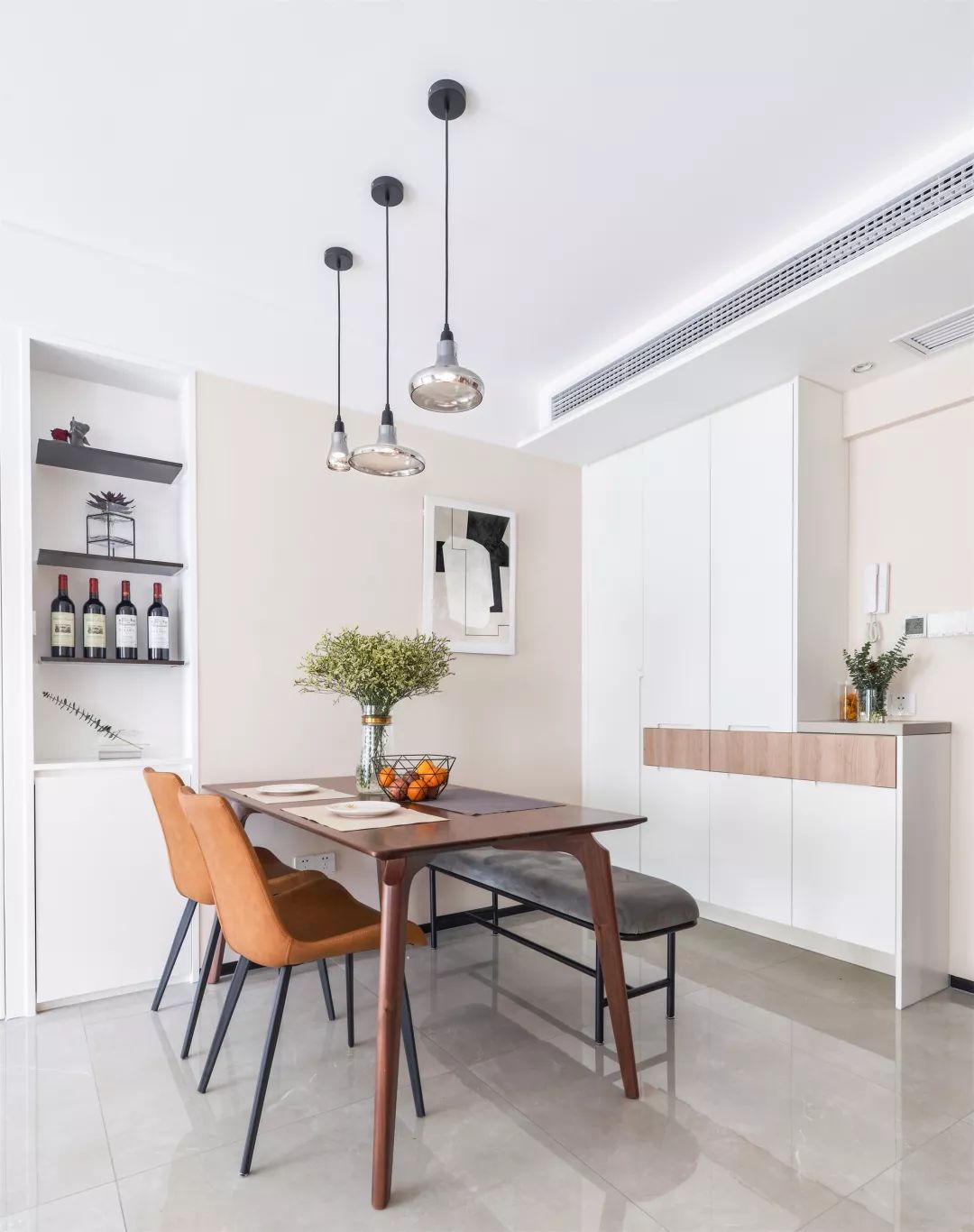 ▲ 餐桌靠墙而立,避开通道,让房间更加通透。