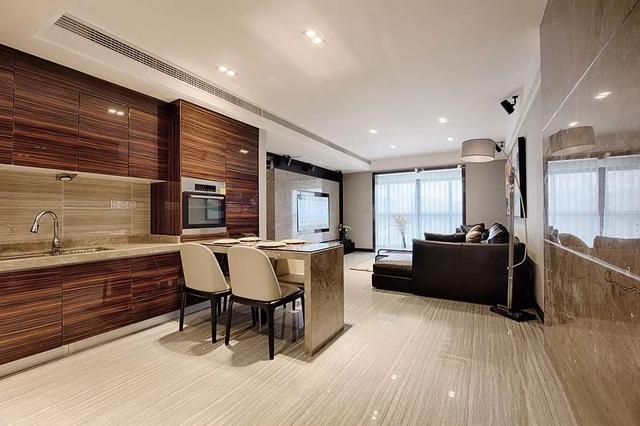▲ 家电多采用了嵌入式的设计,使空间看起来井然有序。