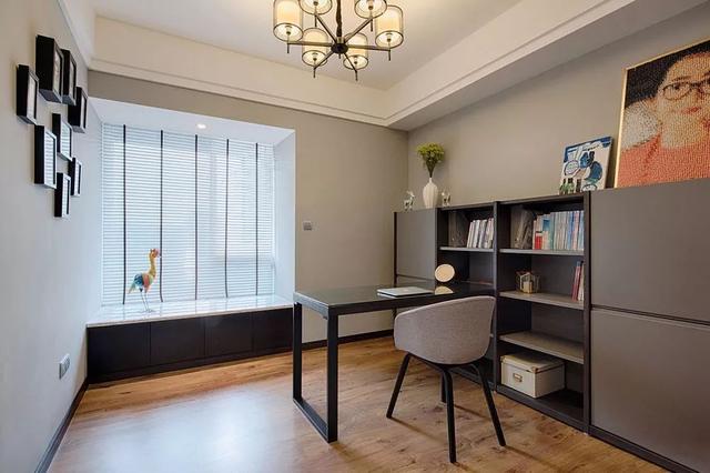 ▲ 书房与主卧相连,大大的飘窗搭配白色百叶窗帘,简洁明亮。