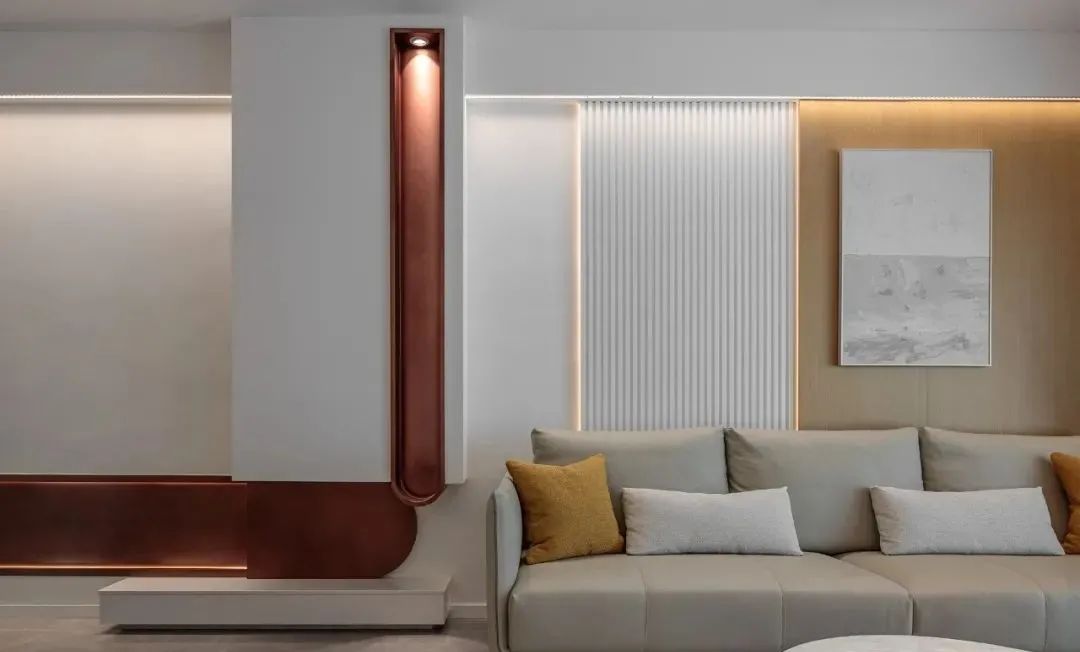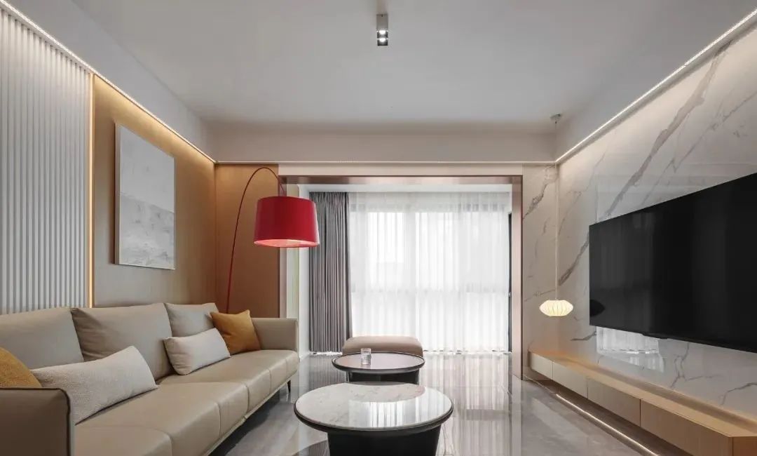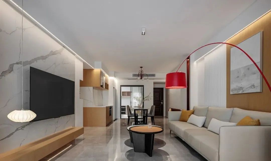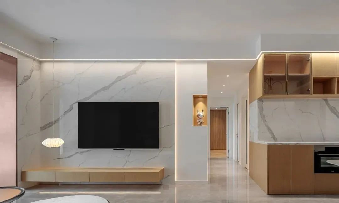爽净的电视墙倍增明亮,棱角分明的线条,划分出空间的界限。
