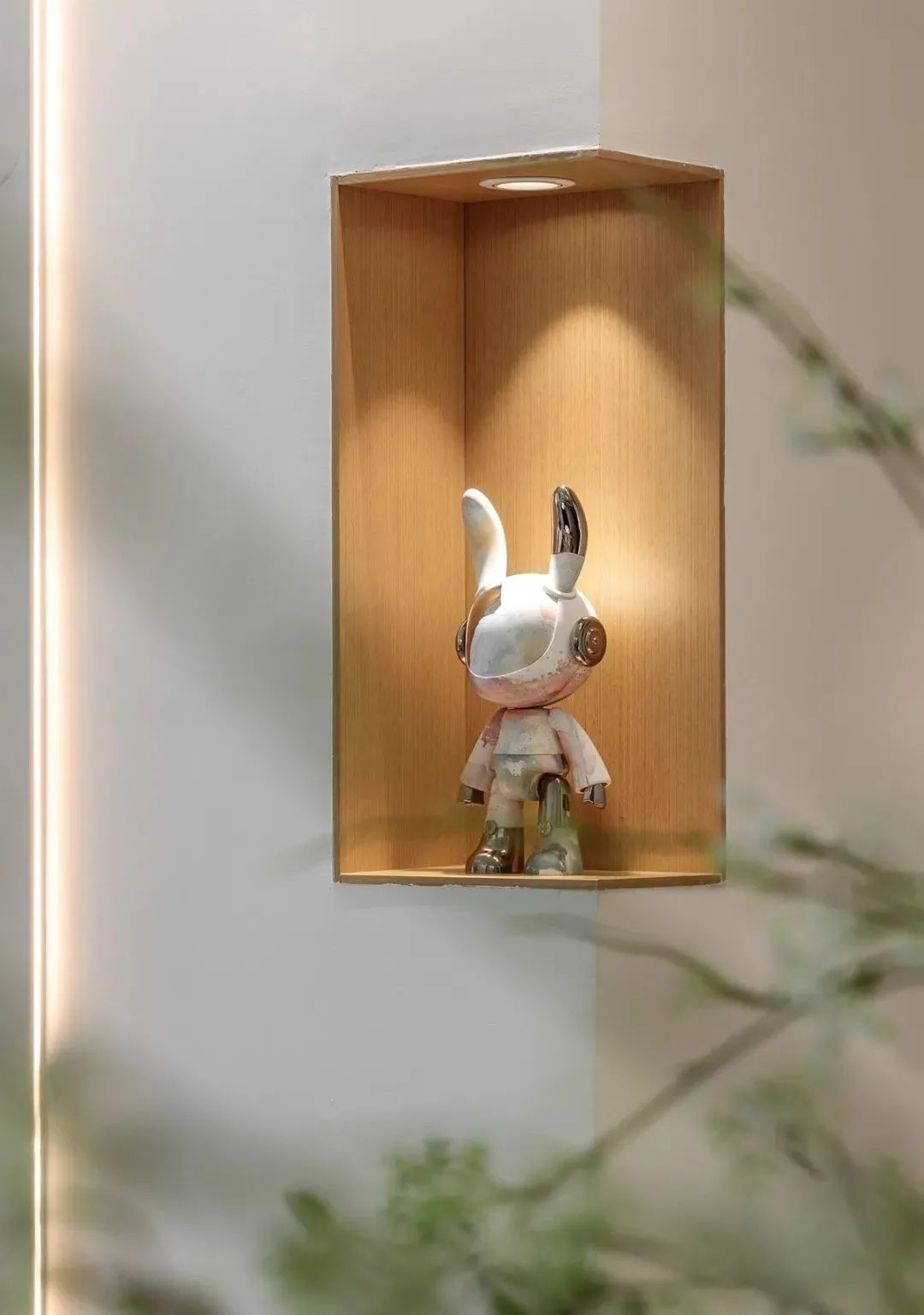 转角的镂空置物格让人眼前一亮,一处小而有趣的设计,往往更能让人有所触动。