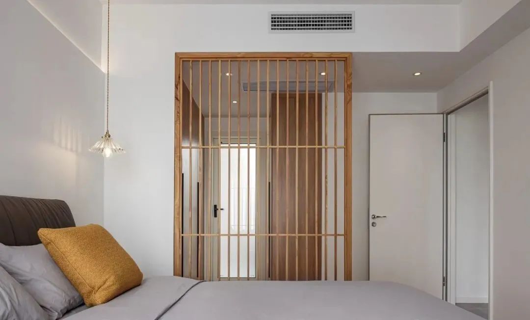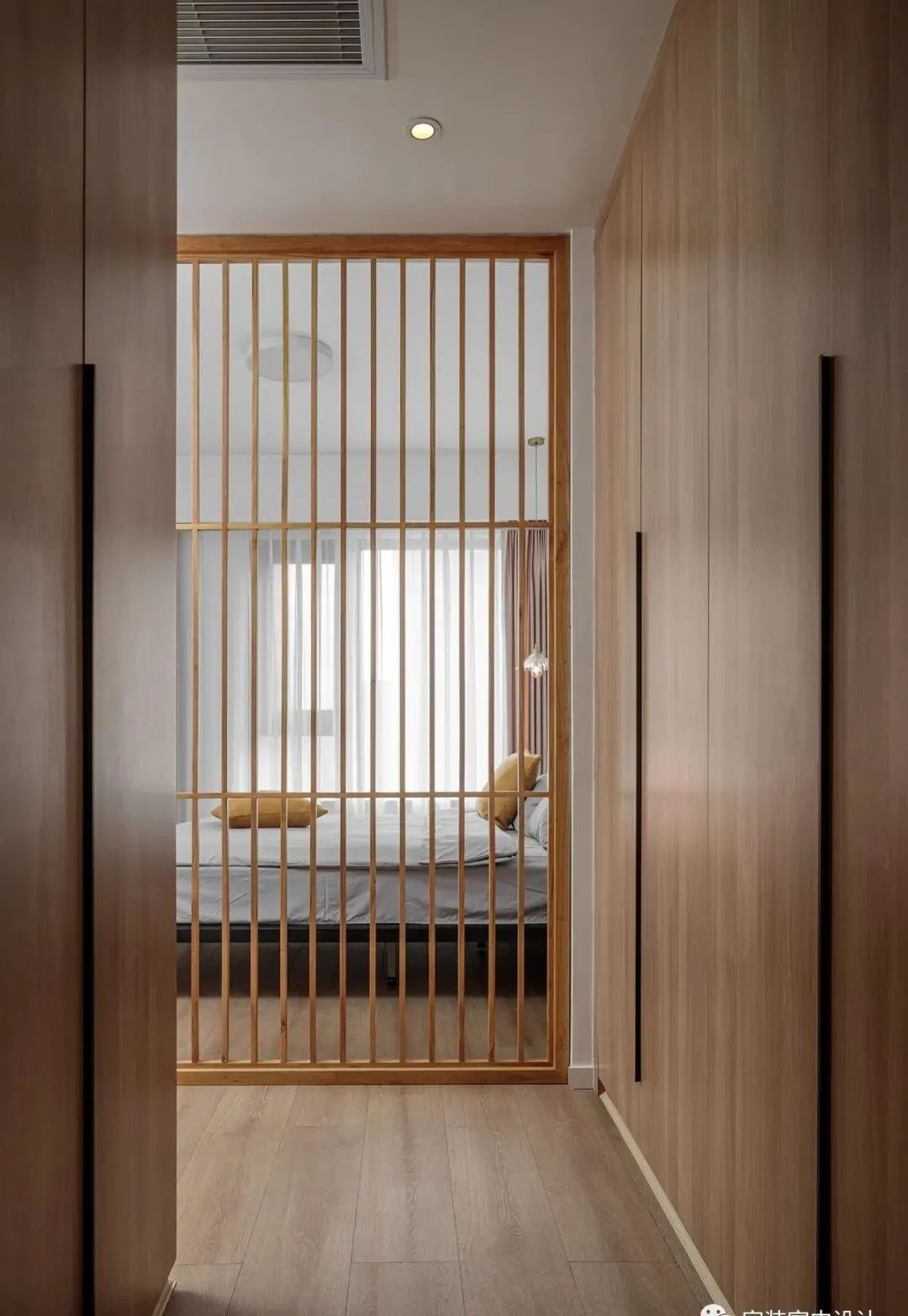 木格栅分隔出衣帽间与休息区,起到了保护隐私和提升空间质感的作用。