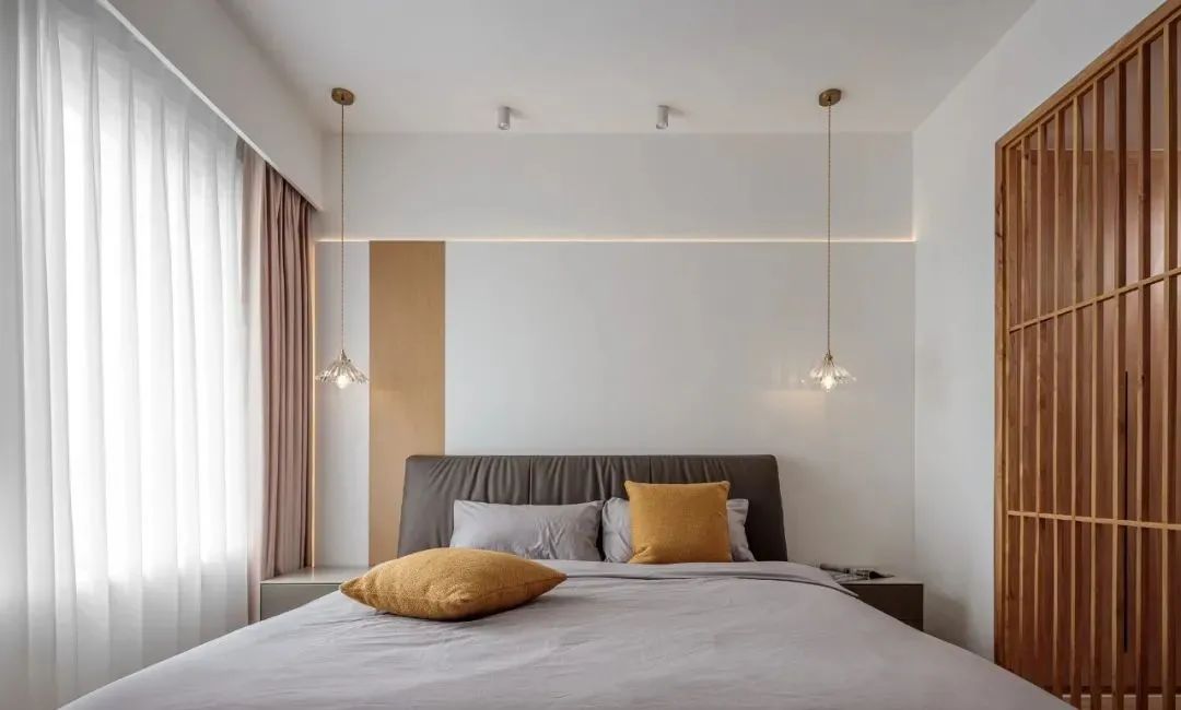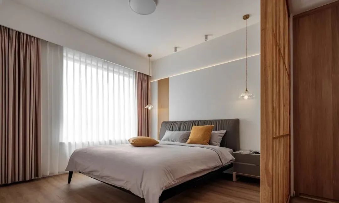 主卧干净明朗,镂空隔断透着古意,仿佛古代女子的面纱,有着镜花水月般的朦胧多情,让人忍不住想要揭开面纱,一睹芳容。