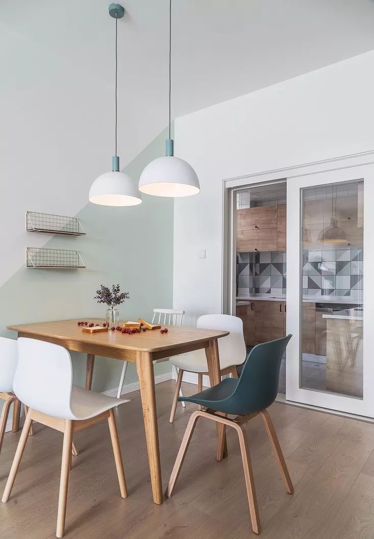▲ 餐厅与客厅的风格一样!简洁大方、原木色、绿色、白色相互交印,色彩丰富却不繁杂。