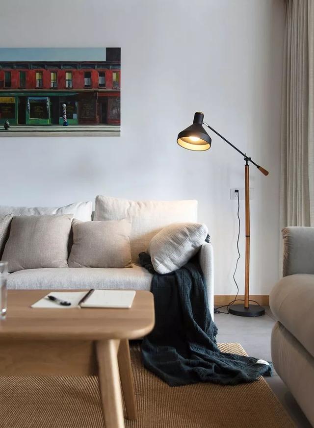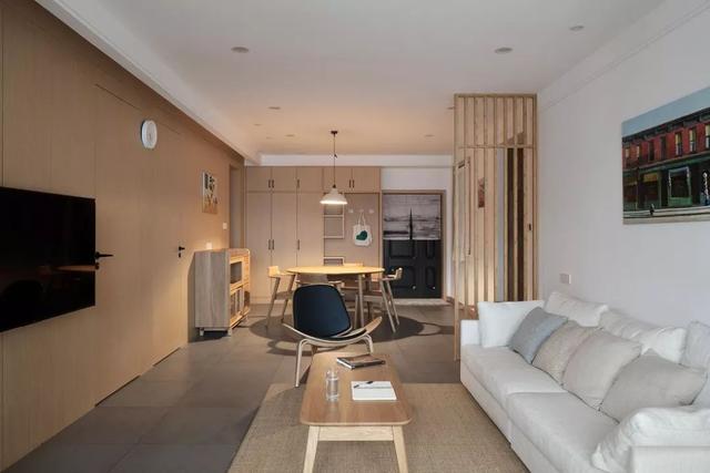 ▲ 客厅空间通透感极强,中度灰的地面与原木色家具的搭配,让空间舒适而清新。