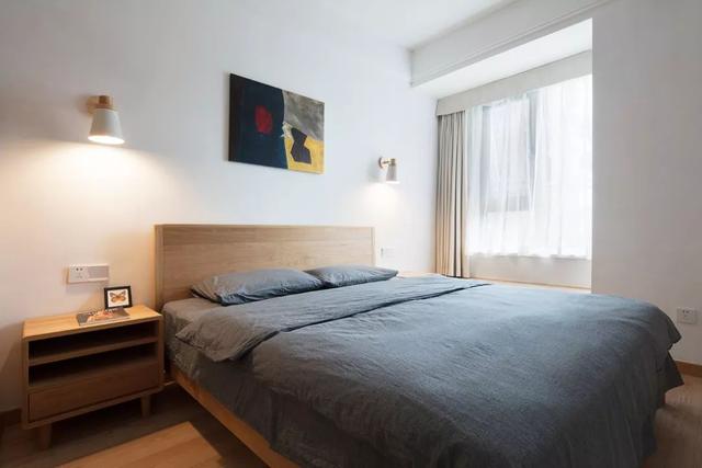 ▲ 次卧简洁大方,白色的小壁灯,更加温馨。