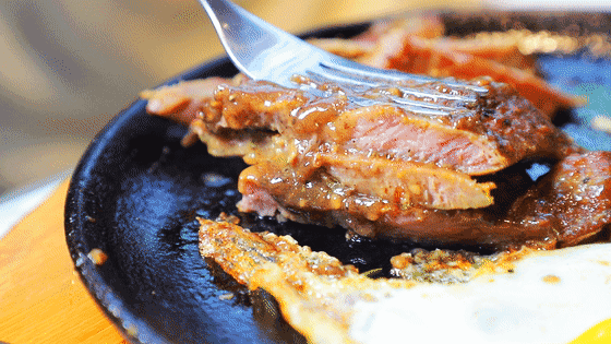 纯正原切牛排,铁板的高温瞬间将肉汁锁住,厨师严格把控熟度,呈现最完美的口感。薄薄一层油,高温急煎,连每颗蛋都变得格外吸引~