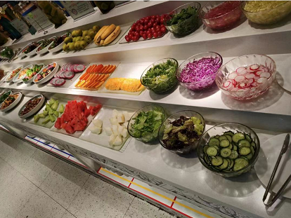 一踏进店就可以看见阔气的自助区摆了长长一溜,上面放满了菜品,熟食烧烤点心还有水果小蛋糕可谓是五花八门!